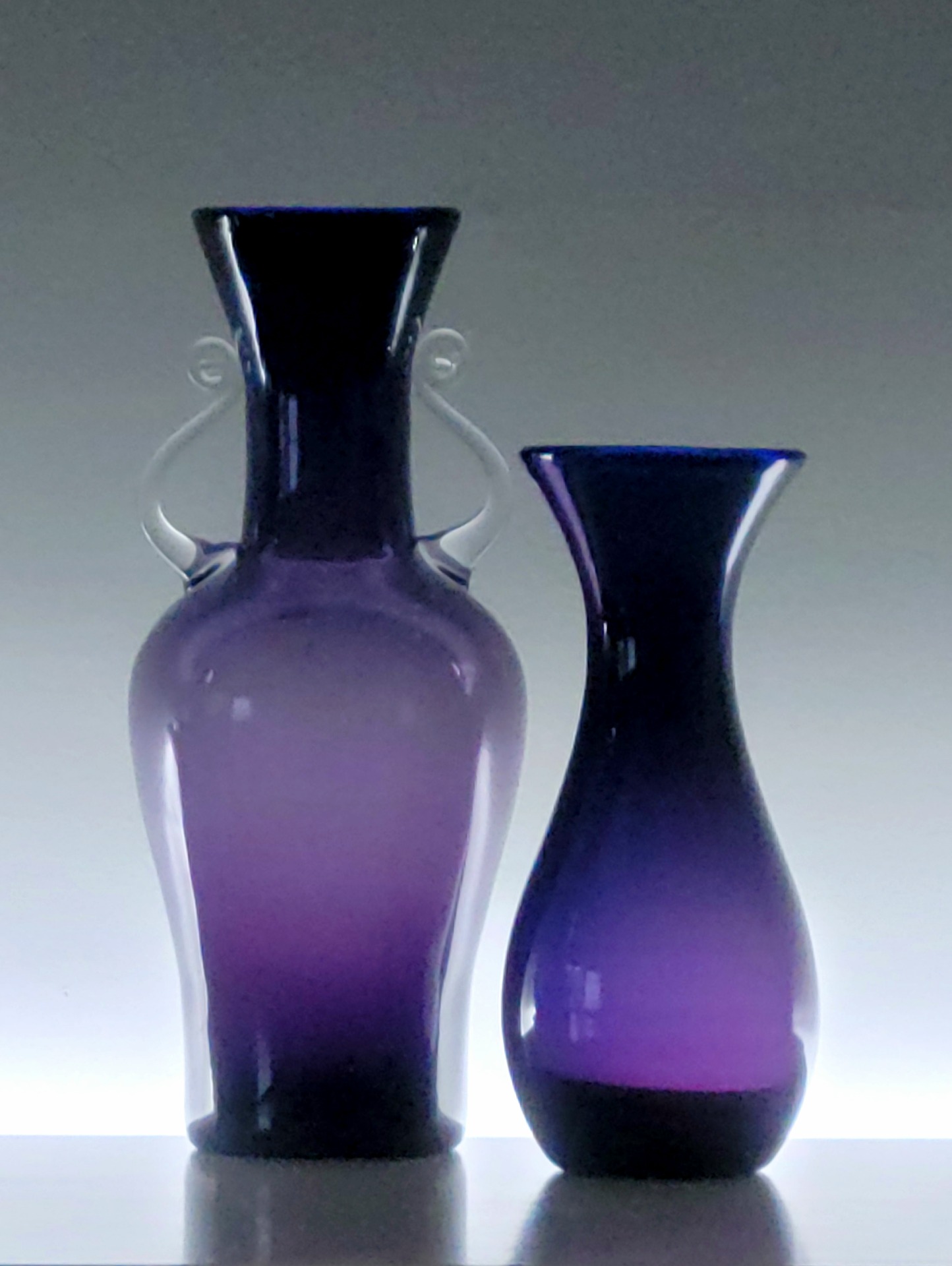 9733 vase with applied crystal handles, and 9813 vase in violet